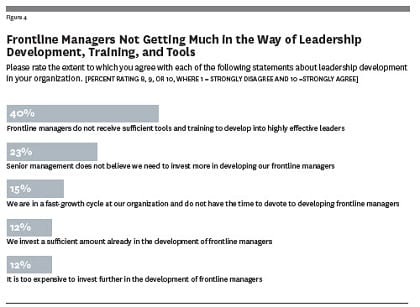 - However, 65% believe that frontline managers do not receive sufficient tools and training to develop into highly effective leaders,